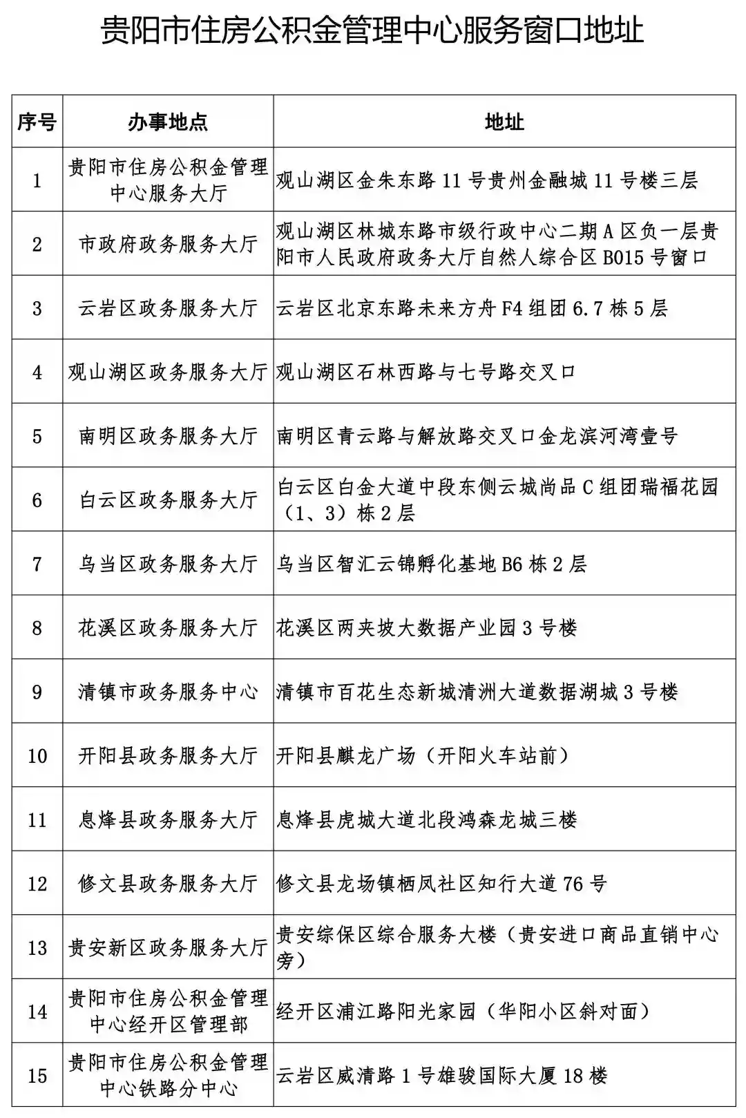 附贵阳市住房公积金管理中心服务窗口地址——
