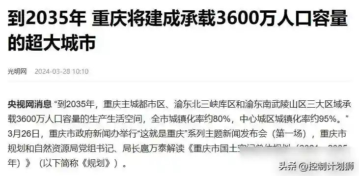 根据最新统计数据表明,重庆目前常住人口大约3100万人,预计到2035年常住人口数量将会占全国人数接近5%,换算一下,到2035年常住人口数量大约在3600-4000万之间。