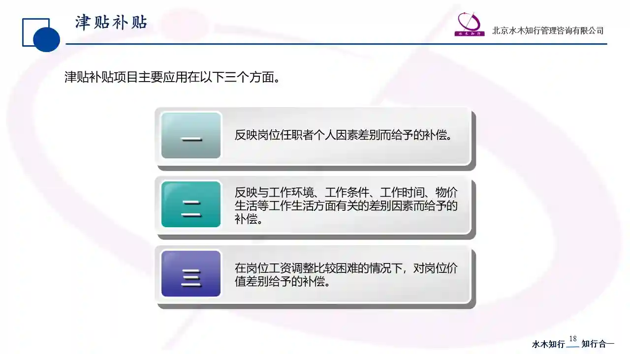 ③具有较大的灵活性,可以随工作环境、劳动条件的变化而变化,可增可减,可减可免。依据个人因素以及岗位因素设置的津贴,除非岗位发生变动,一般情况下不能轻易取消或降低。