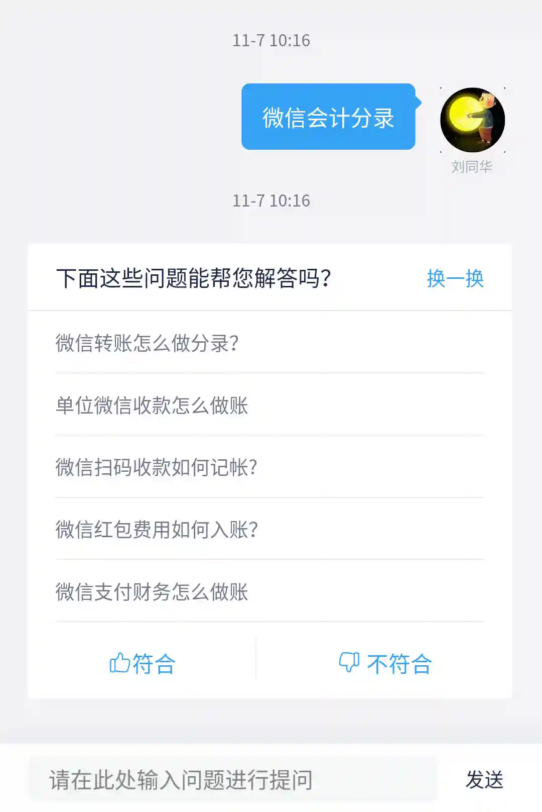 一屏推送5个问题,通过“换一换”可以显示下一页问题