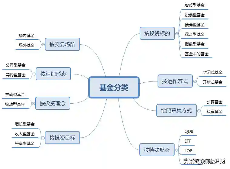 下面这个图可以清晰看到基金按照不同标准、不同维度的分类: