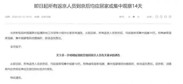 外地入京一律隔离14天的政策,在北京已实施了两月有余。