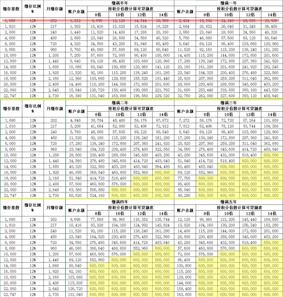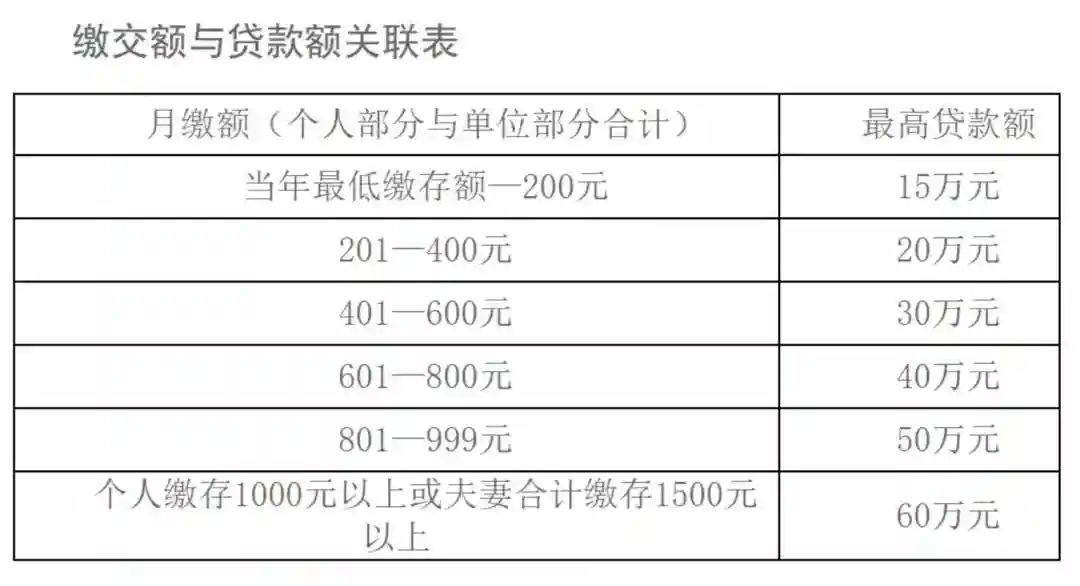 市公积金的月缴额对应最高贷款额度,可参考下图关联表。