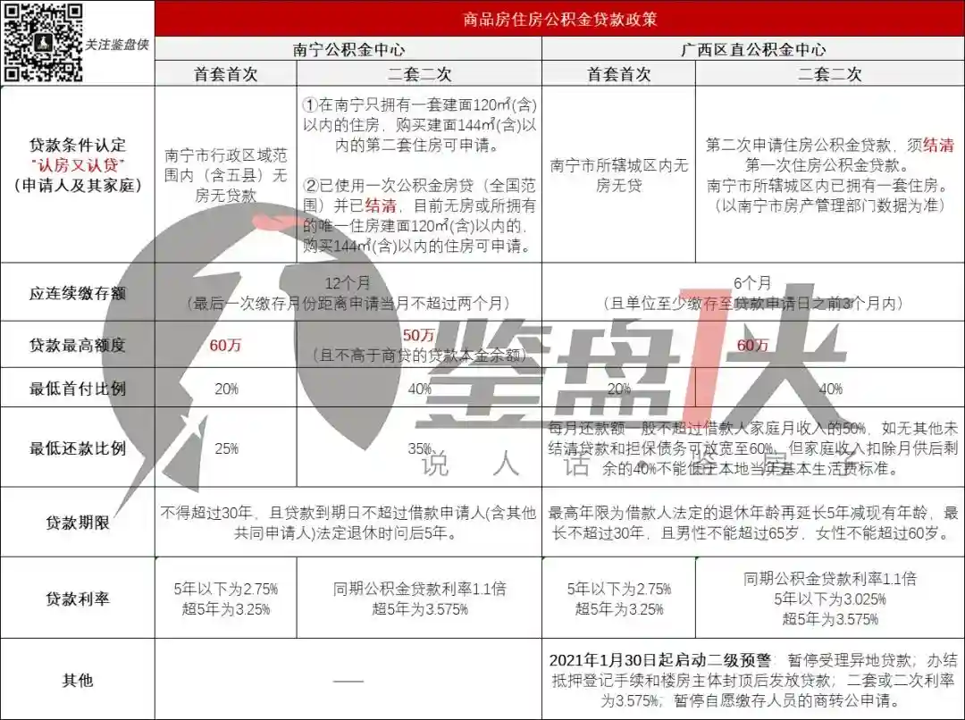 ▲南宁市公积金/广西区直公积金贷款政策对比