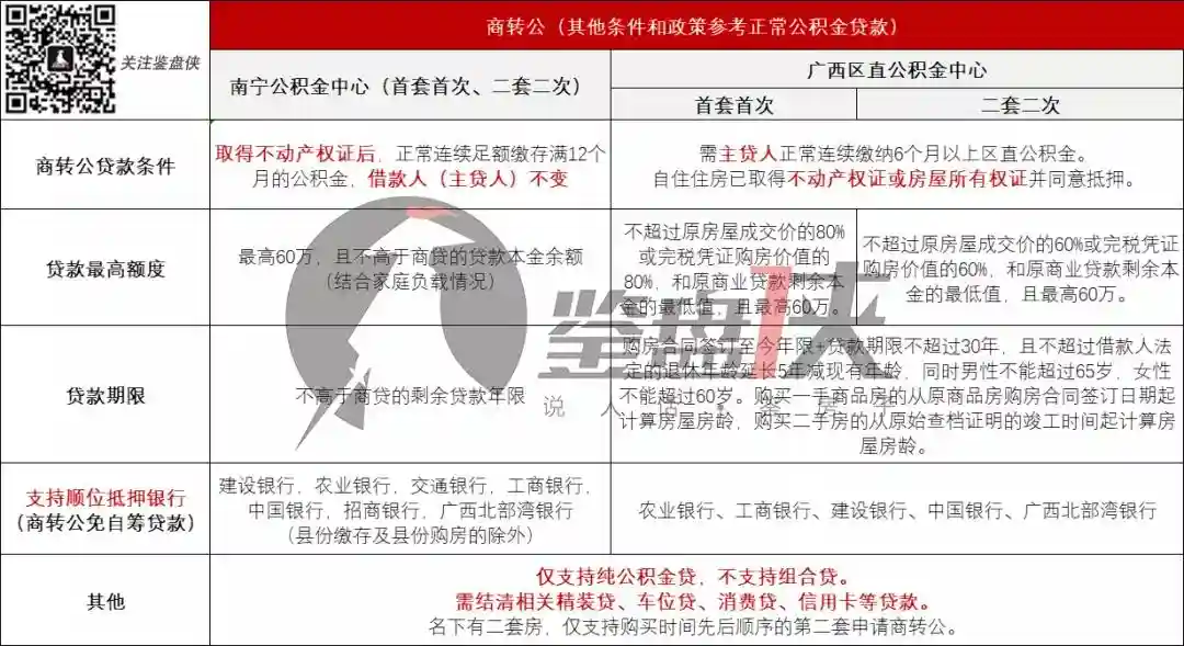 ▲南宁市公积金/广西区直公积金商转公政策参考