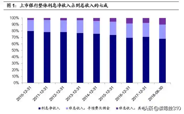 2015年之后,国内上市银行整体的利息收入占比开始有所下降,但基本还是占到了总收入的七成以上。
