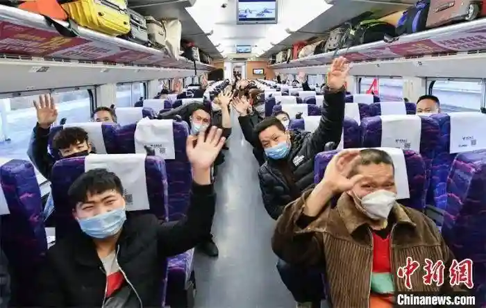 图为在贵州省黔西南布依族苗族自治州贞丰县,返岗农民工排队上车。肖雄摄