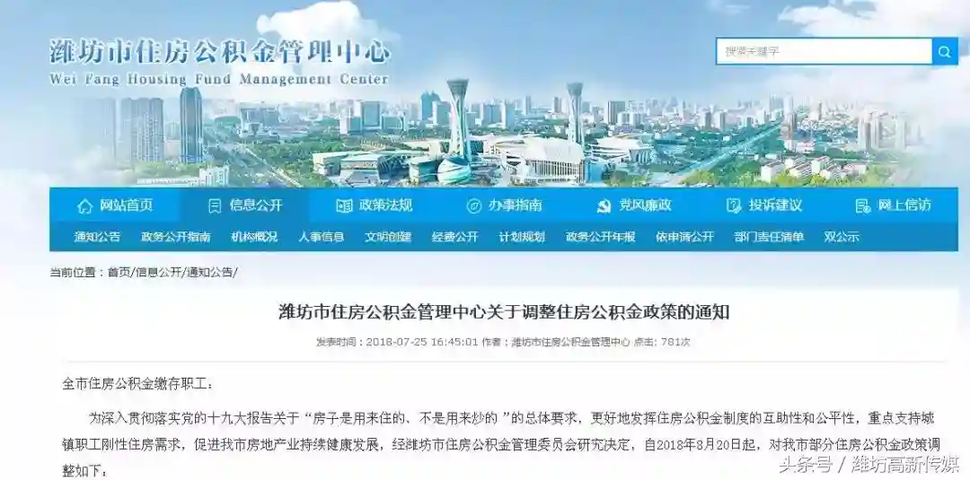 潍坊市住房公积金管理中心发布《关于调整住房公积金政策的通知》