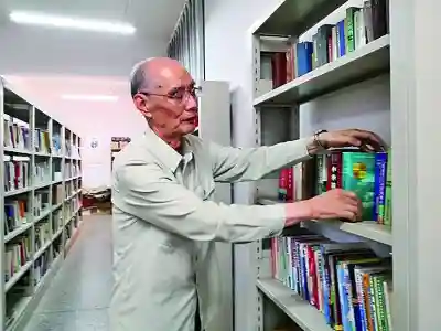 孙宁生在茨营中学希望图书室整理图书。记者张勇摄/光明图片